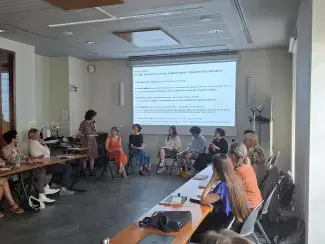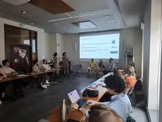 Le 27 Juin dernier s'est tenue la table ronde marquant la clôture de l'année pour la promotion 2024-5 du DU Delphine Lévy, réunissant participantes et participants pour échanger autour de leurs travaux menés au long de l'année. Cette journée a permis nombre d'échanges et de réflexions enrichissants sur les perspectives autour des questions de l'accès au patrimoine culturel dans son sens le plus large.